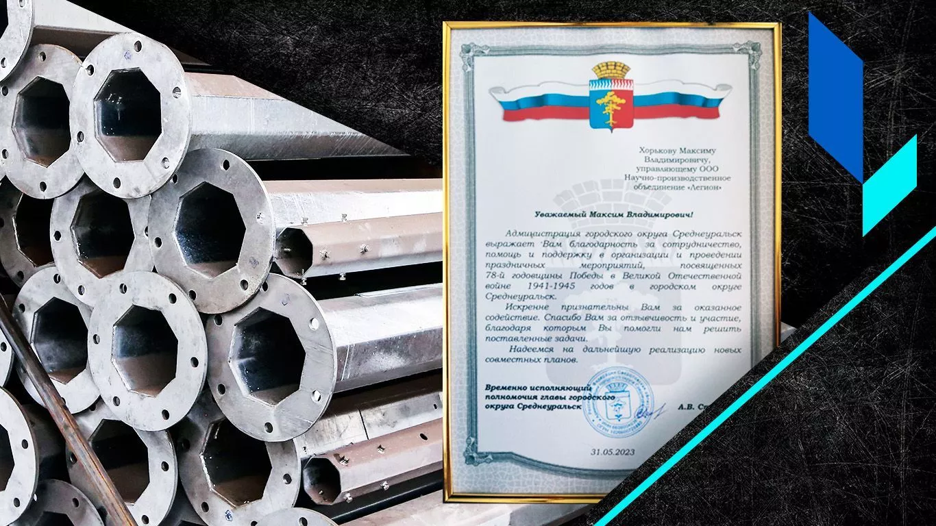 22 июля 2023 года город Среднеуральск отмечал свой 92-й день рождения. Это было важное событие для всего городского округа, и мероприятие было организовано великолепно. На празднике было много почетных гостей, включая главу города, который лично наградил нескольких сотрудников нашей компании за их вклад и поддержку.Одним из отмеченных был Хорьков Максим Владимирович, управляющий ООО НПО «Легион». Он был удостоен грамоты за свое сотрудничество, помощь и активную поддержку в организации и проведении праздников, посвященных 78-й годовщине Победы в Великой Отечественной войне.